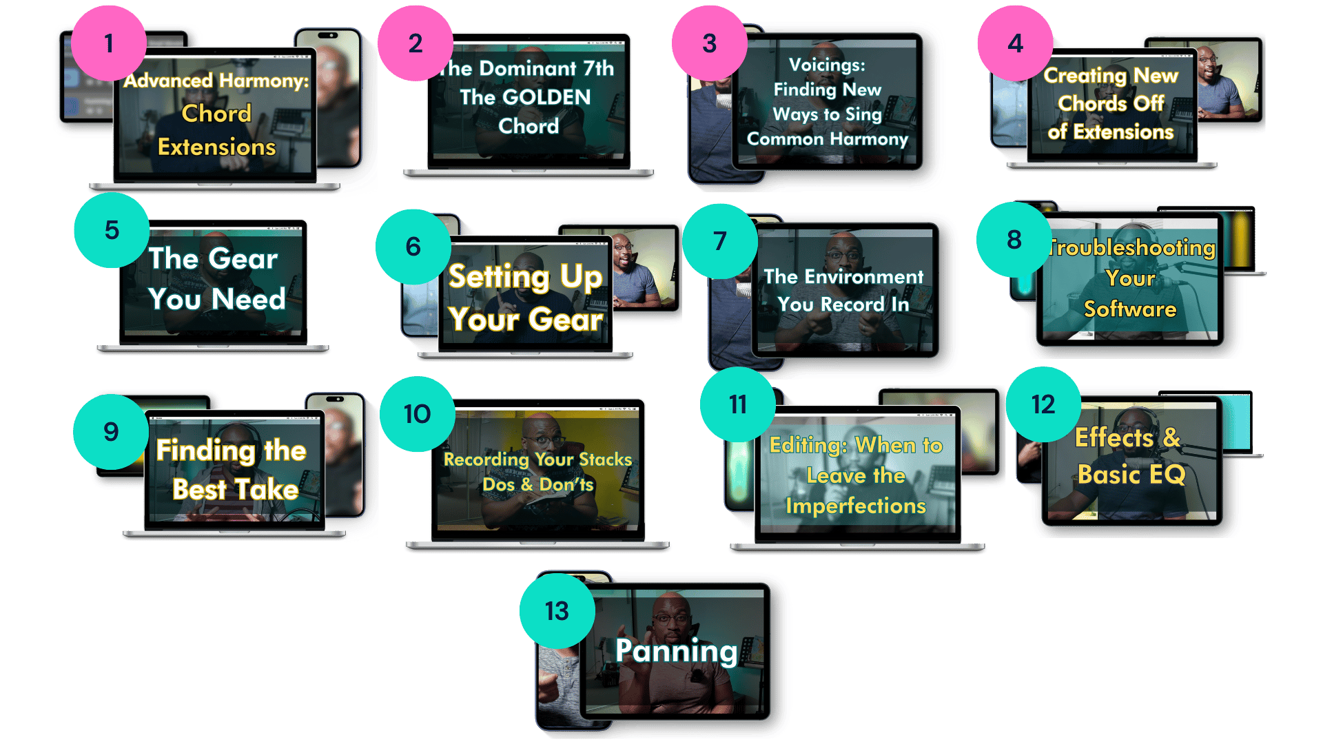 These training sessions walk you through the exact systems I use to stack vocals, build clean countermelodies, and pull the most out of every song I write!